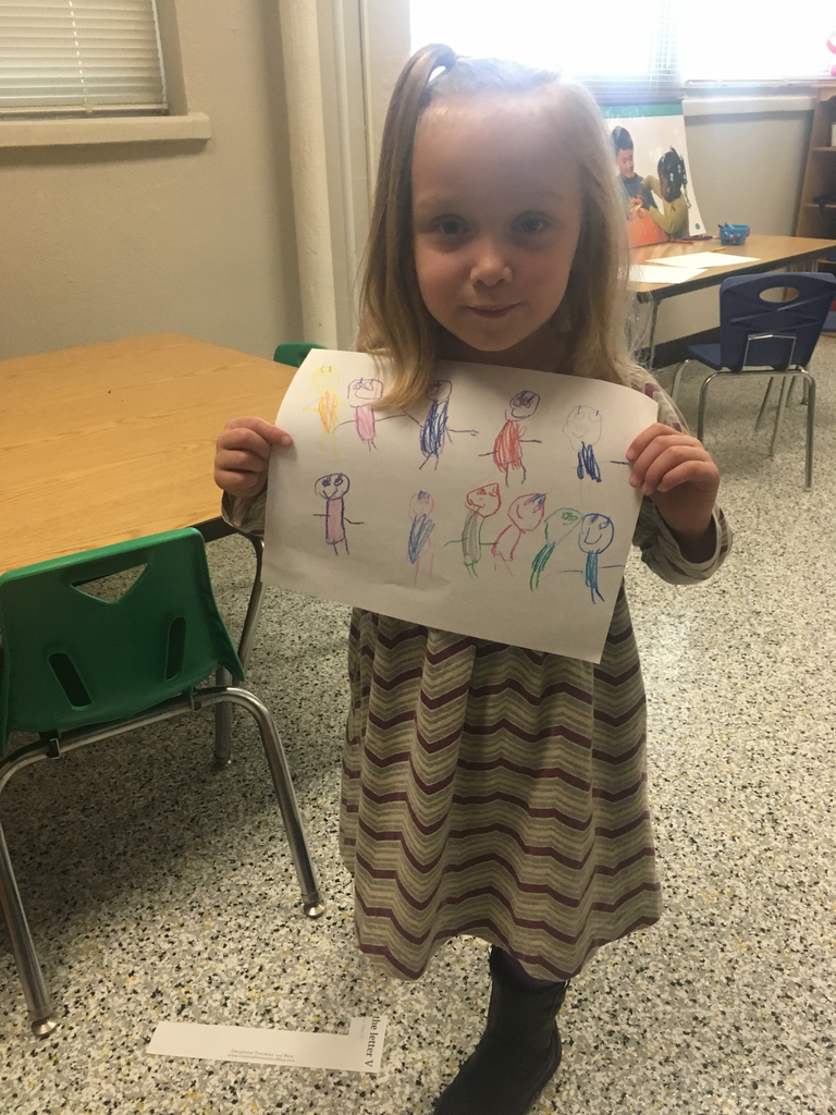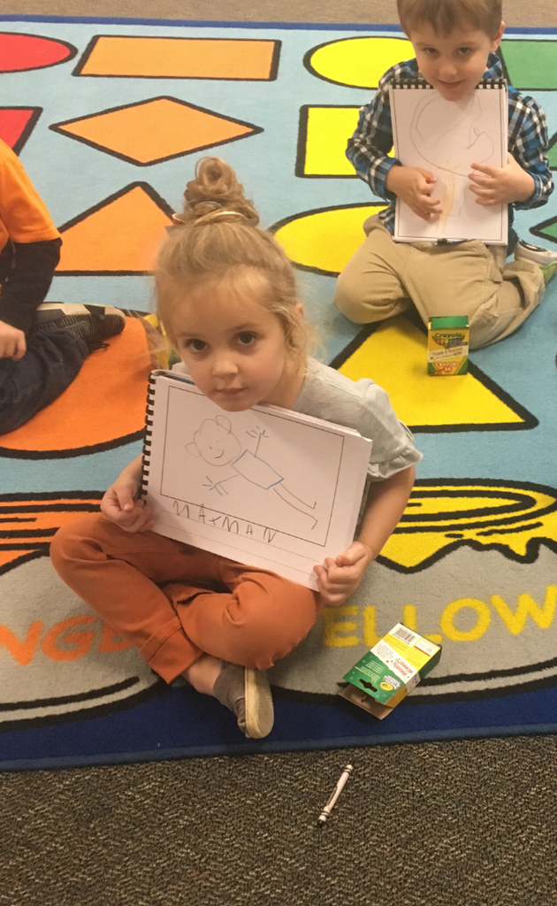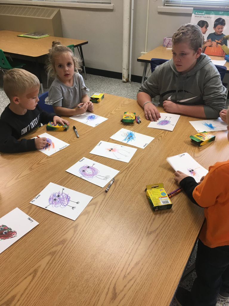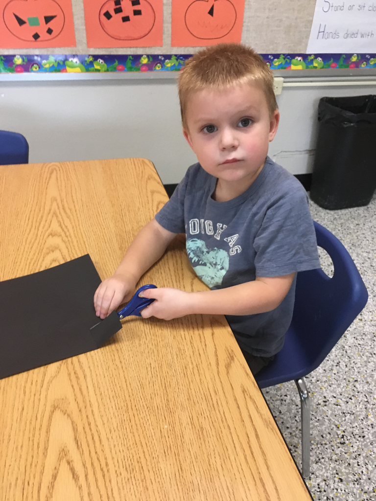 Ms. Jones’ morning preschoolers drawing scary monsters and practicing their cutting skills!